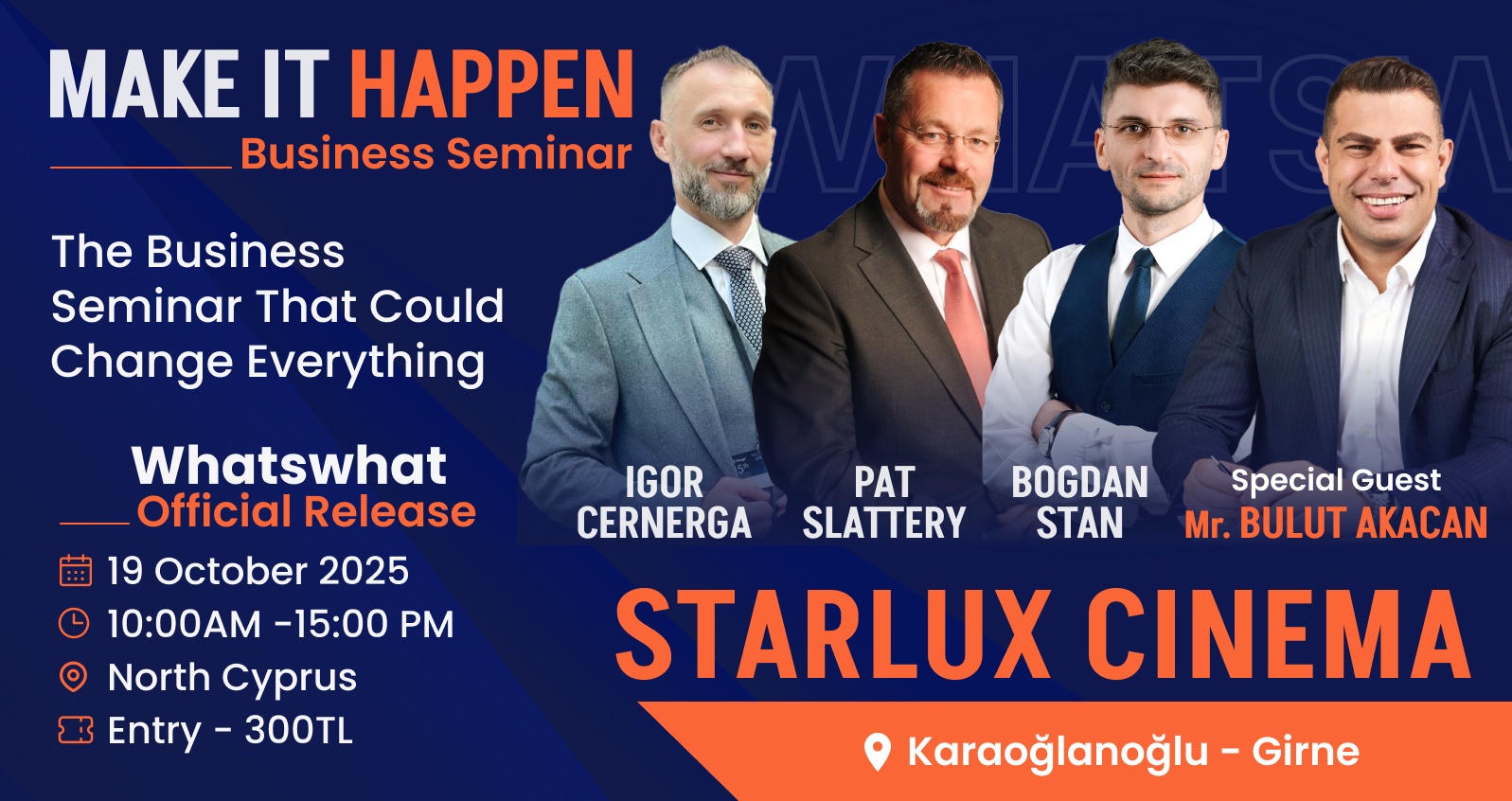 On 19 October 2025 at Starlux Cinema in Girne, we’re bringing together three powerhouse leaders for the Make It Happen Business Seminar — an event designed to move you from thinking about success to actually creating it.